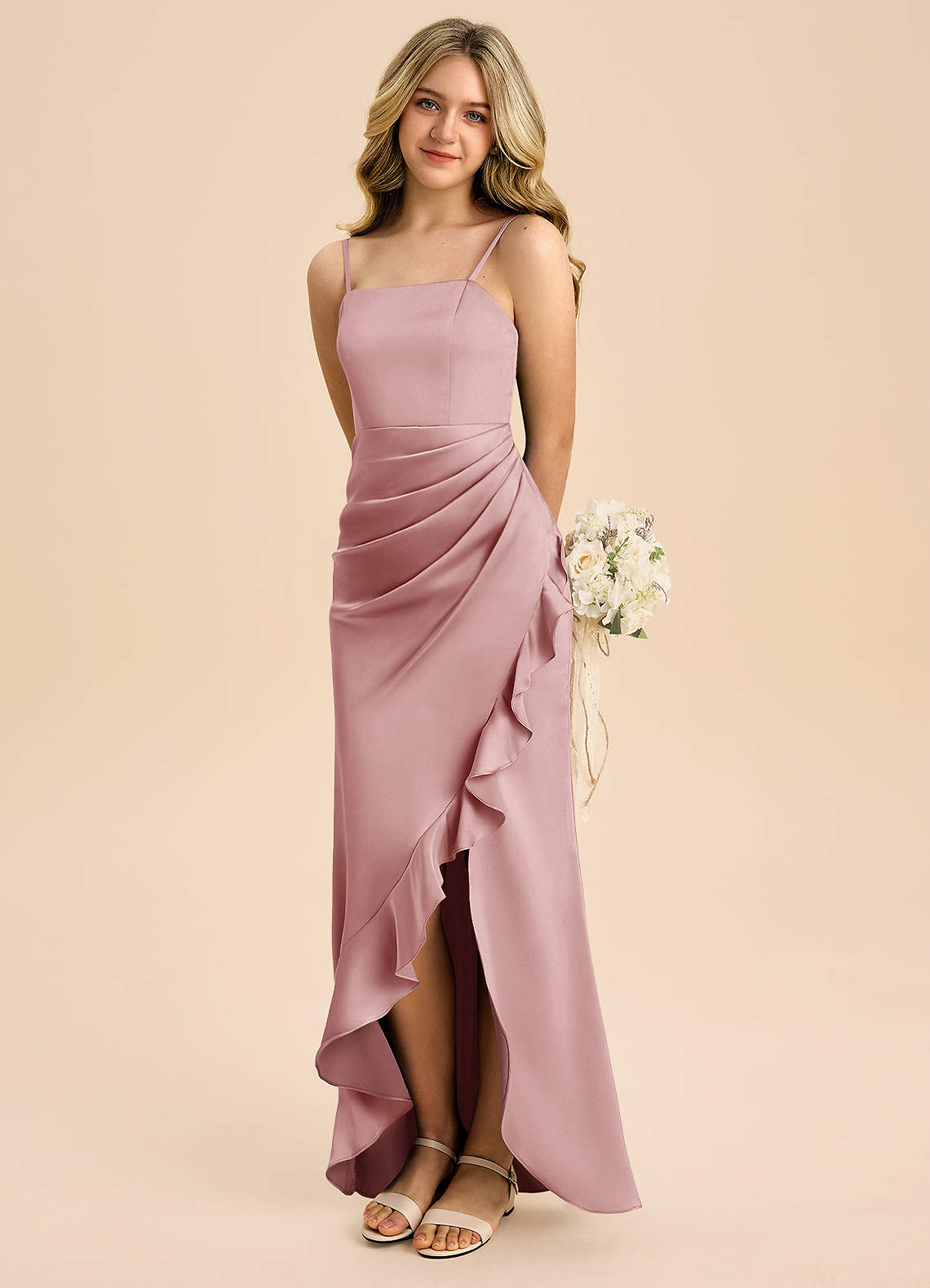 Dusty Rose Sheath Pleated Stretch Satin Dress