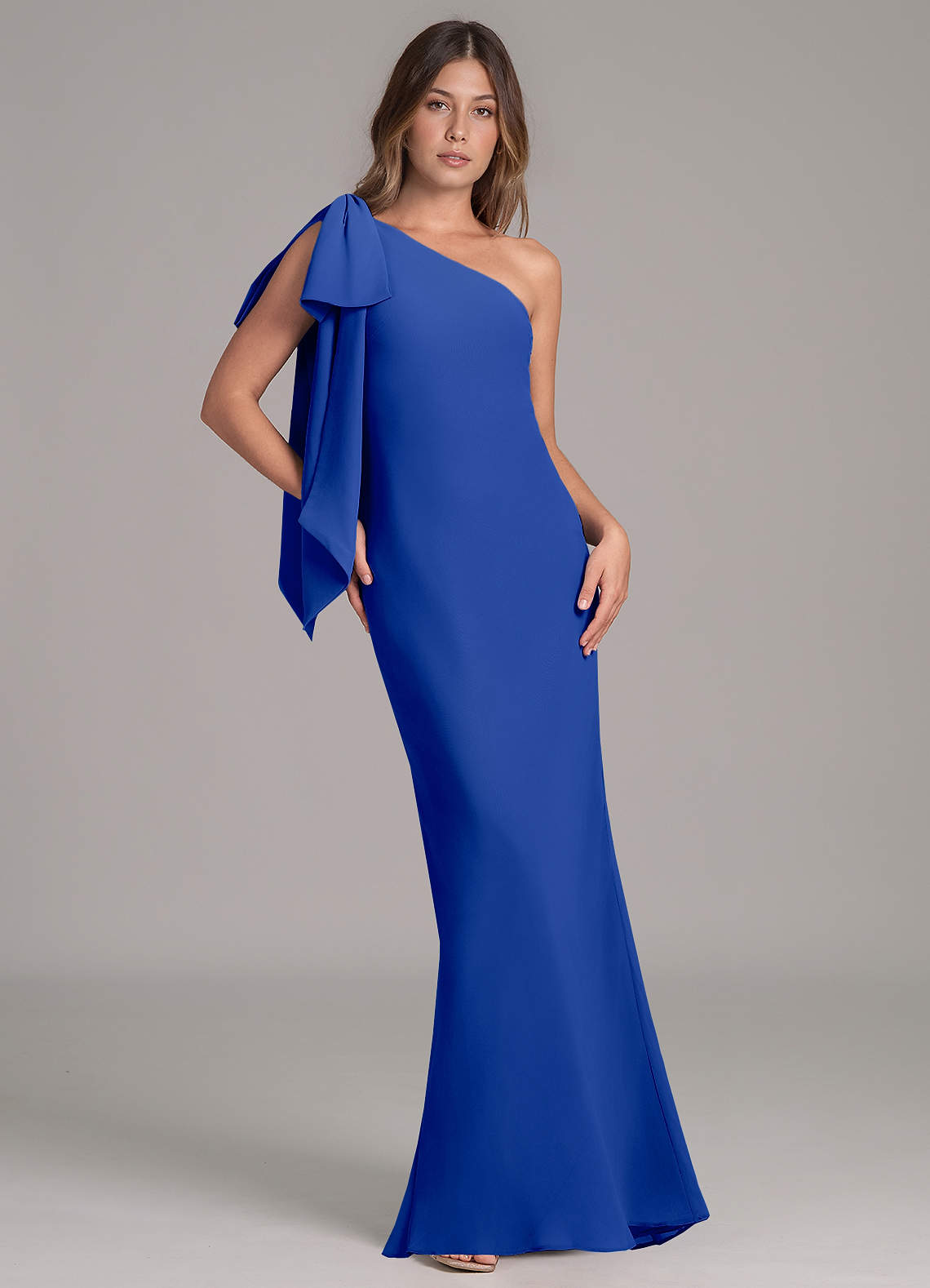 Royal Blue A-Line One Shoulder Chiffon Dress