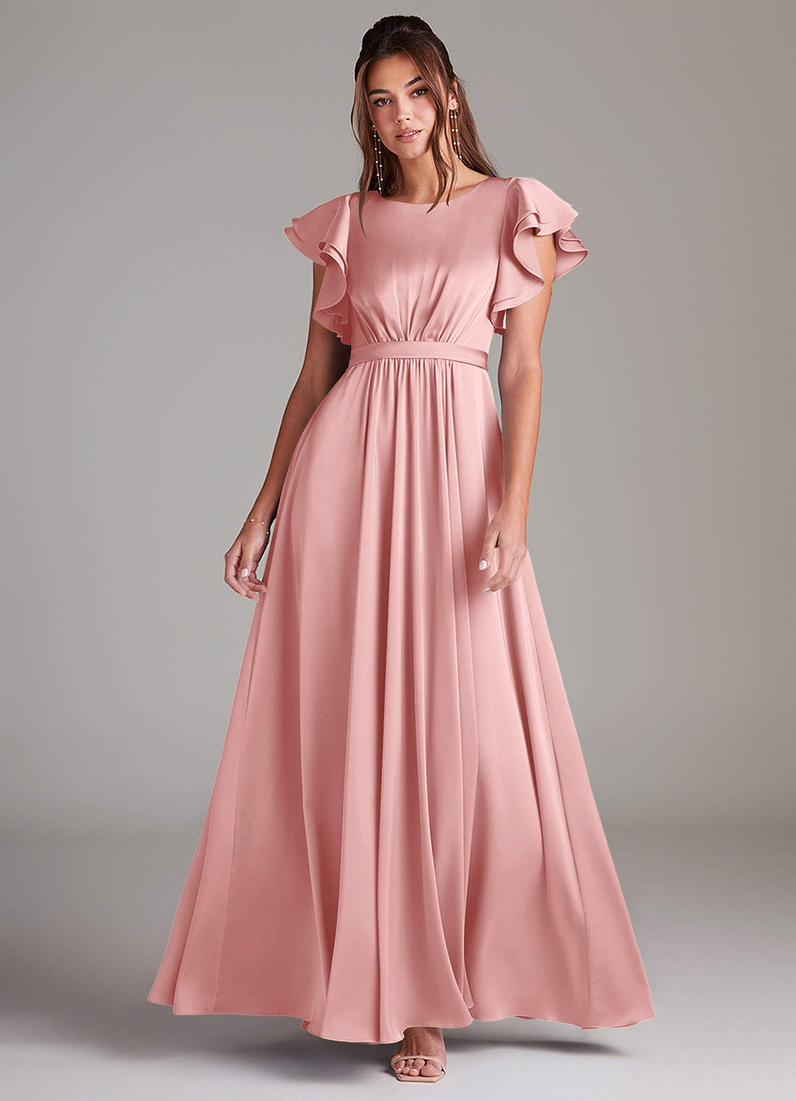 A-Line Ruched Stretch Satin Floor-Length Dress Powder Pink