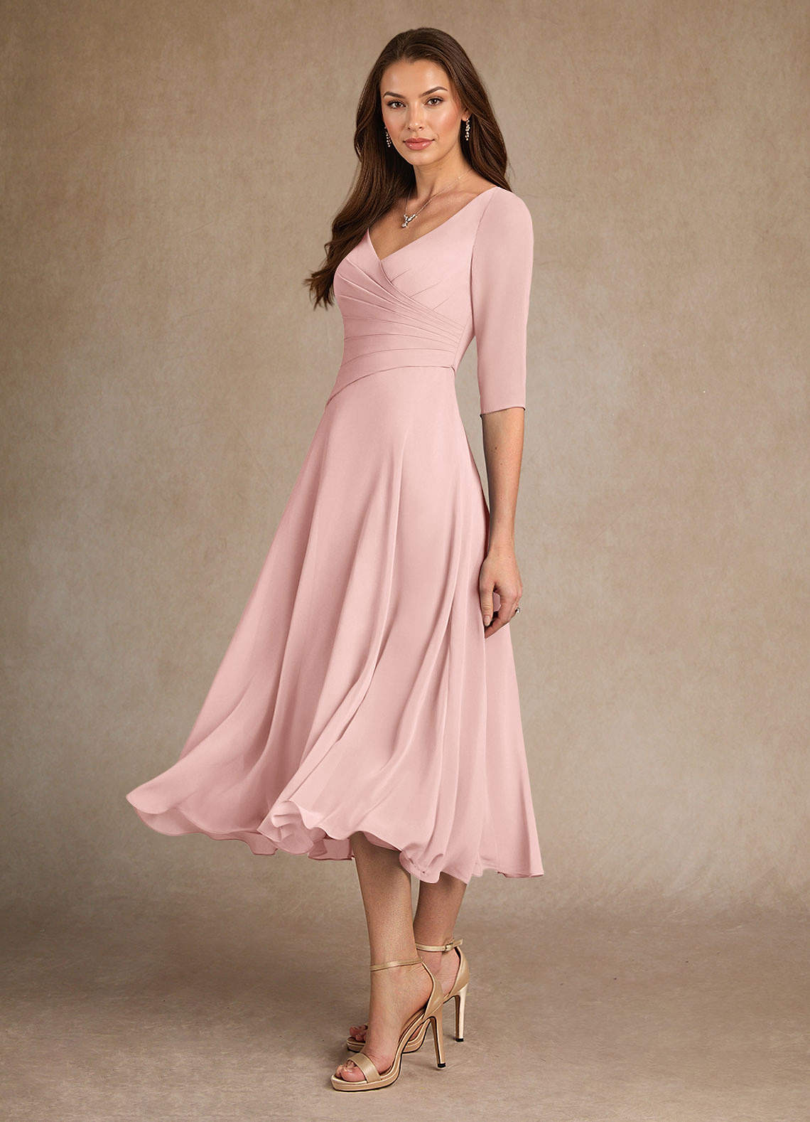 Powder Pink A-Line Pleated Chiffon Dress