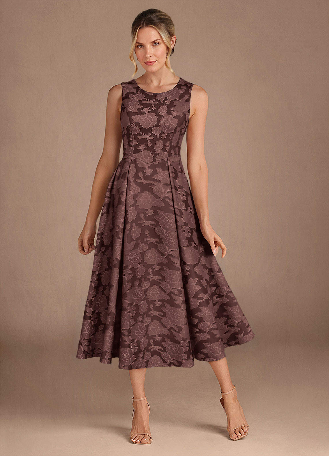 Espresso A-Line Pleated Floral Burnout Dress