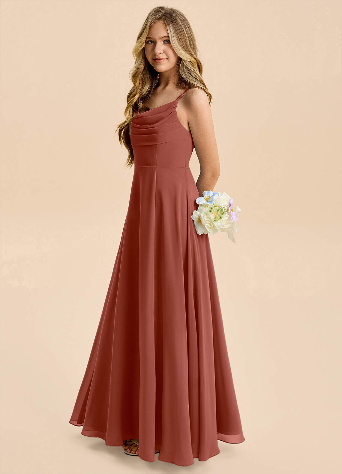 Auburn A-Line Pleated Chiffon Dress