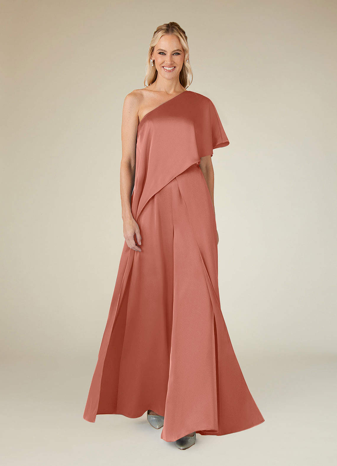 Salmon Pink Jumpsuit/Pantsuit Stretch Satin Dress