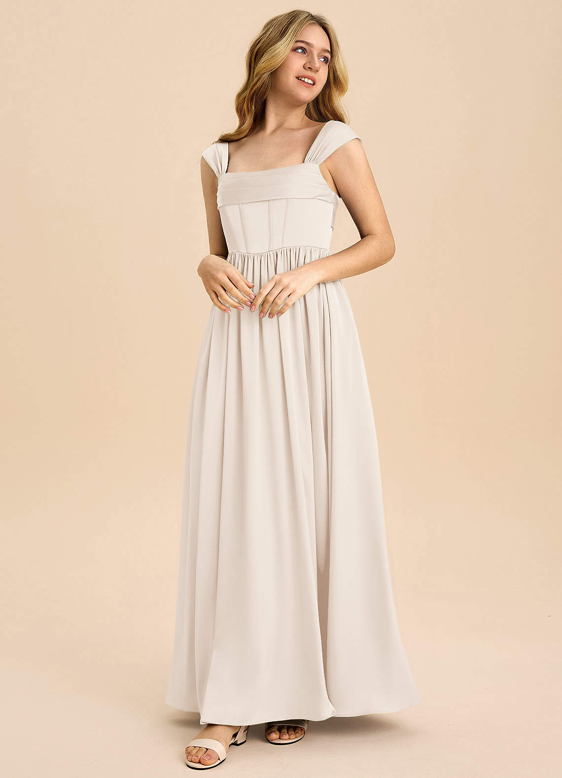 White Alabaster A-Line Pleated Stretch Satin Dress
