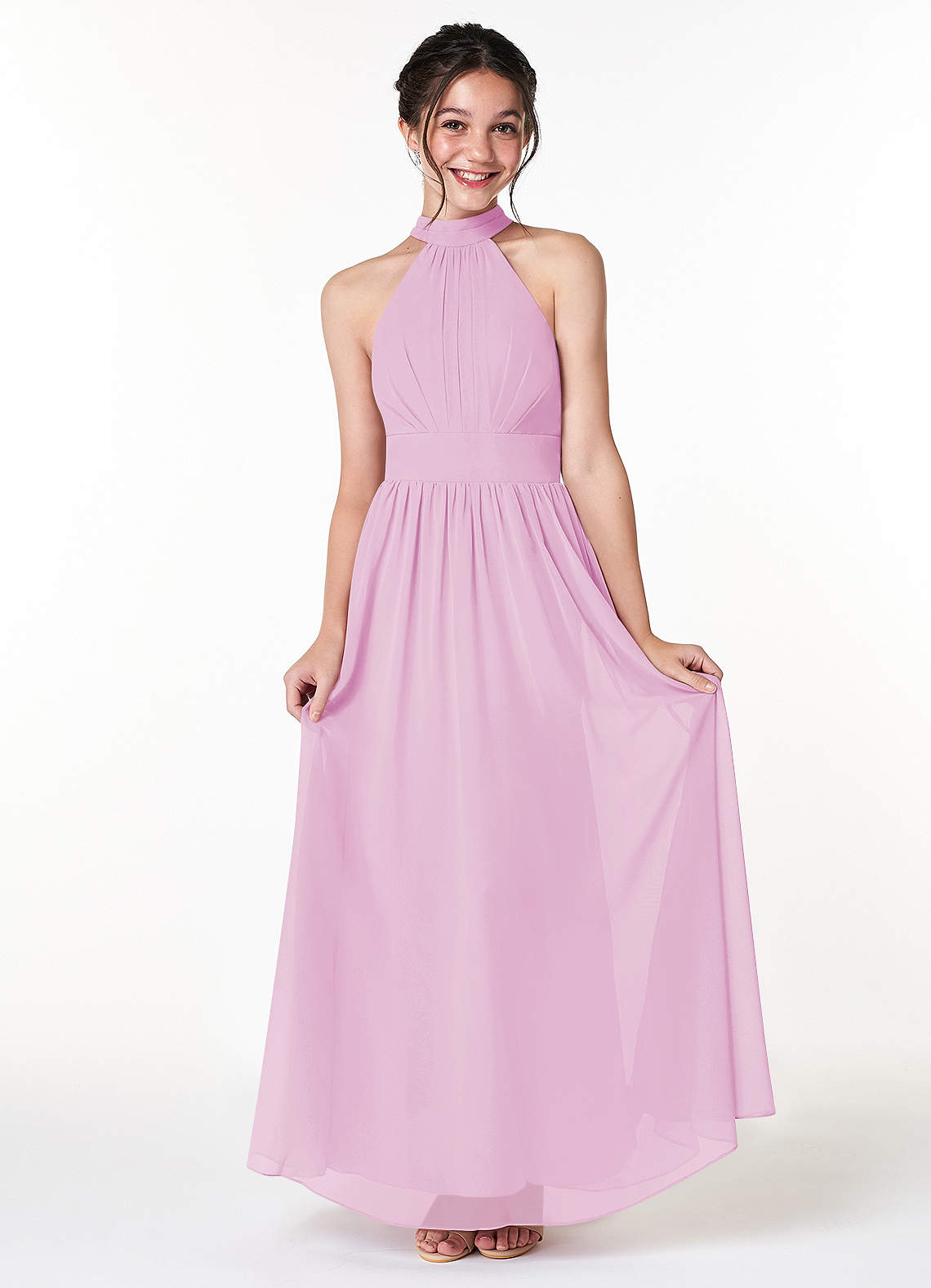 Candy Pink A-Line Pleated Chiffon Dress