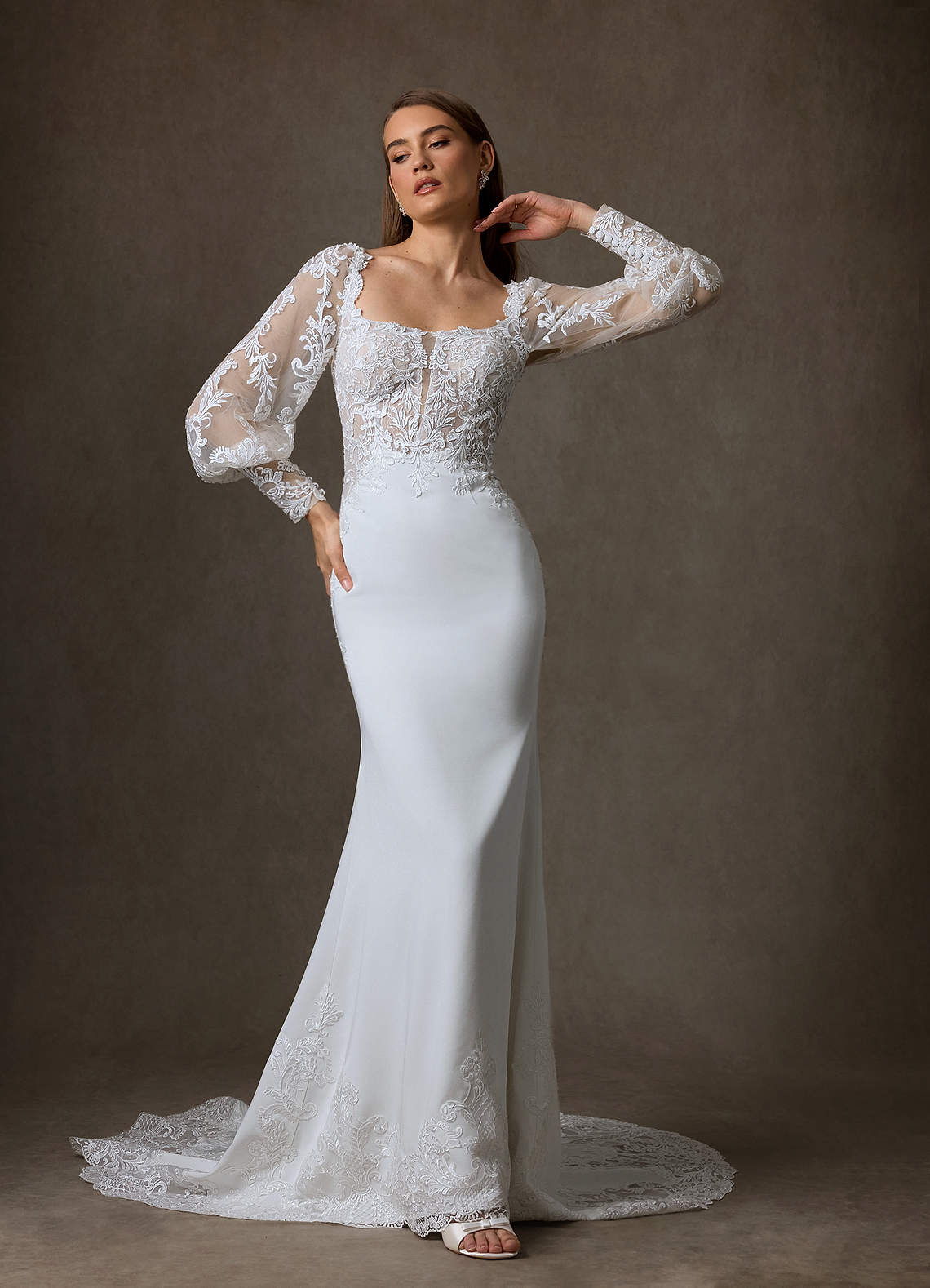 Diamond White Champagne Mermaid Lace Dress