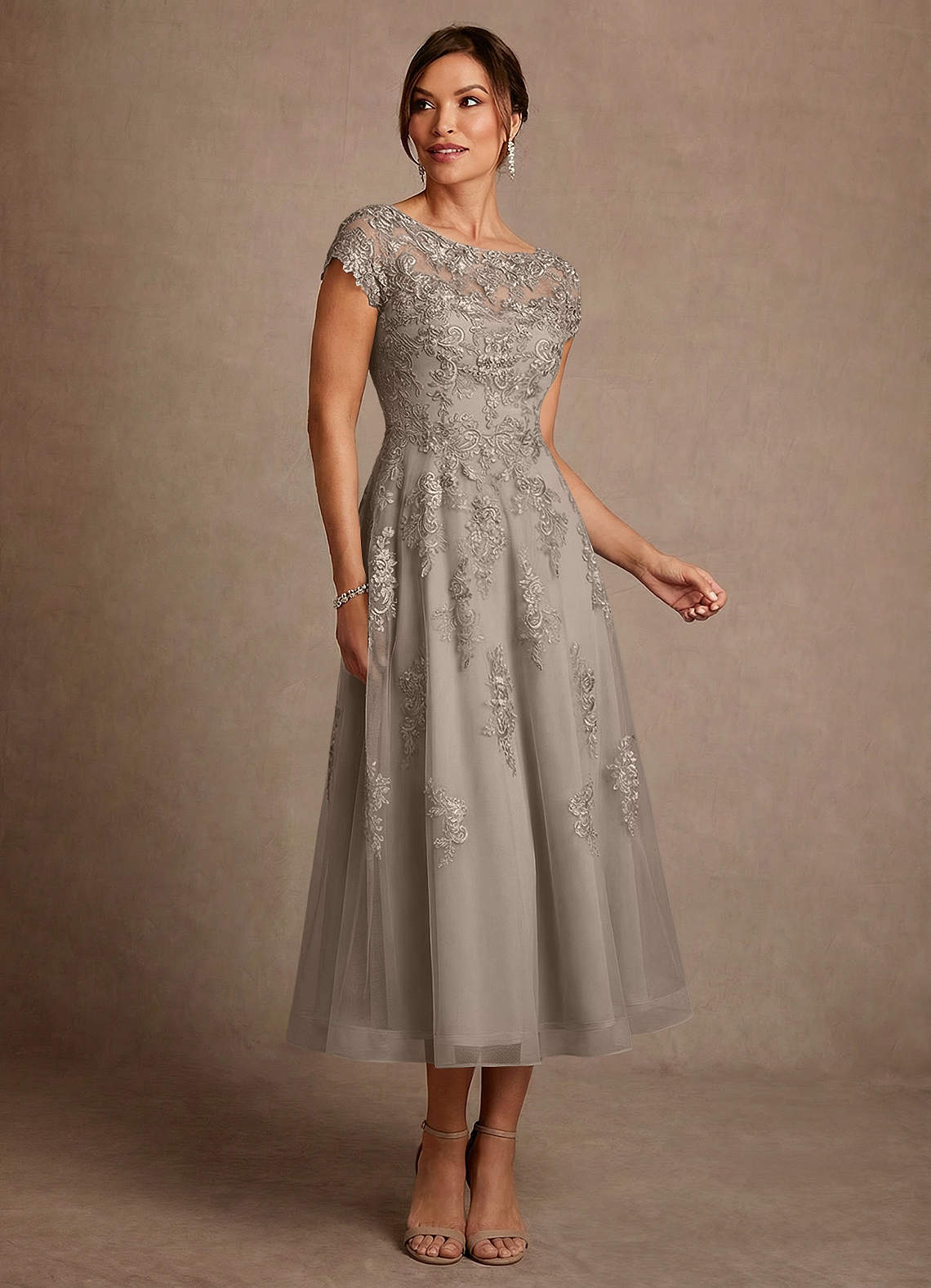Taupe A-Line Lace Dress