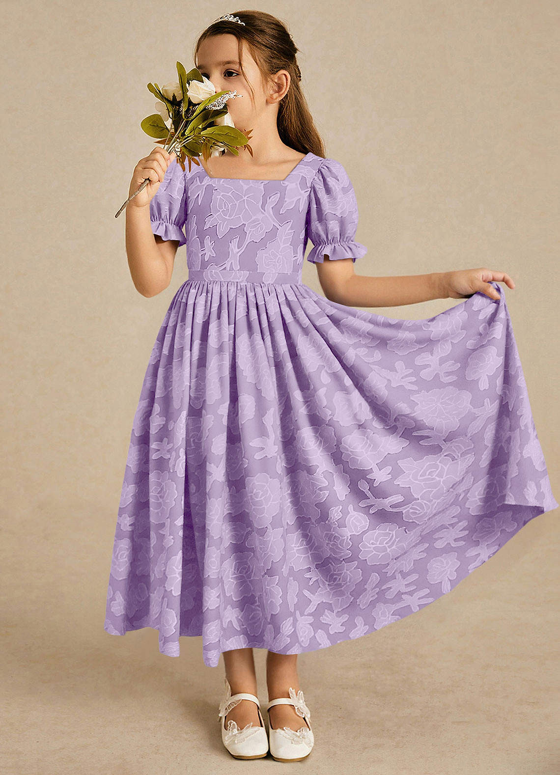 Lilac A-Line with Sleeves Floral Burnout Dress