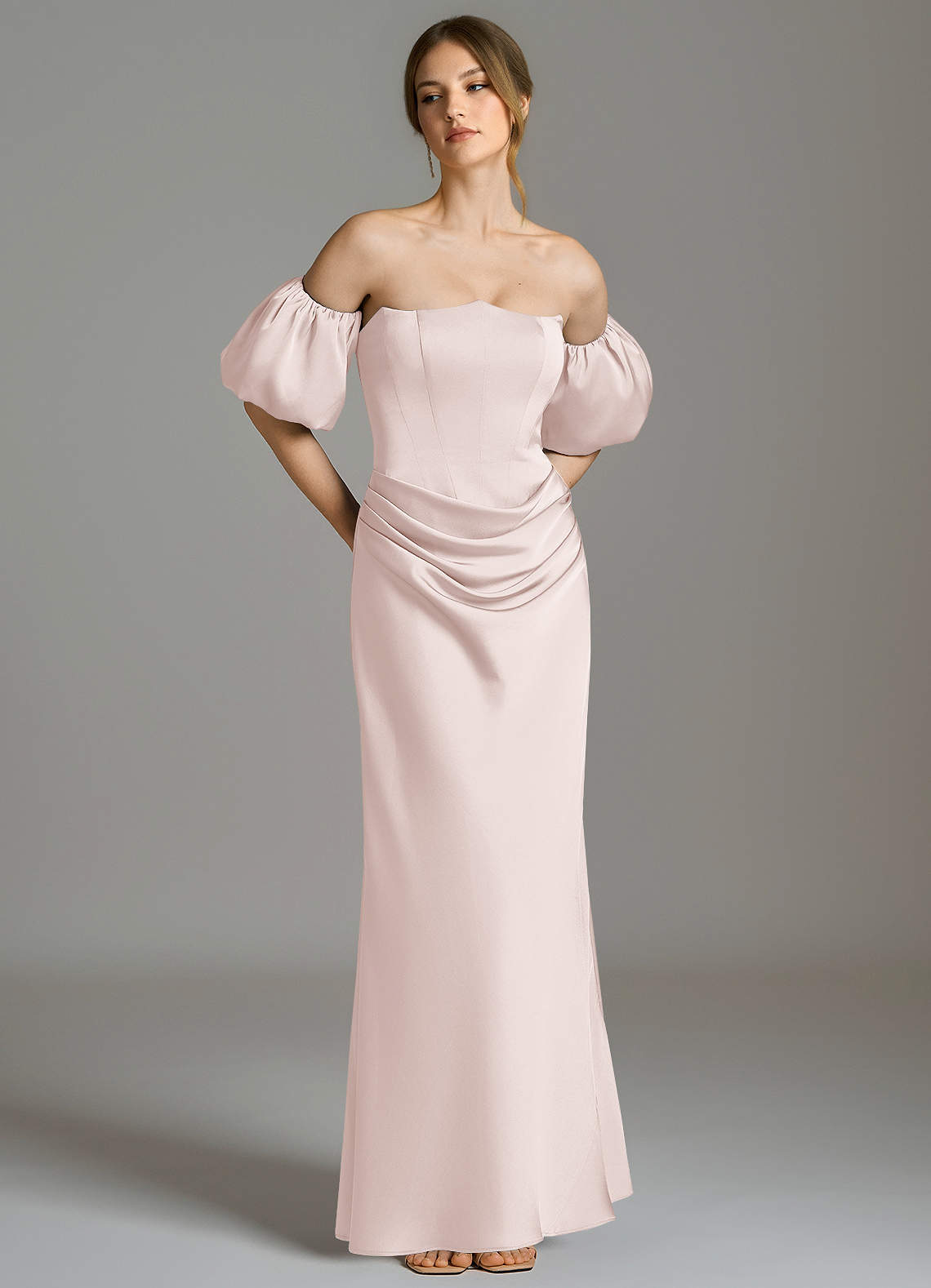 Blushing Pink Mermaid Off the Shoulder Stretch Satin Dress