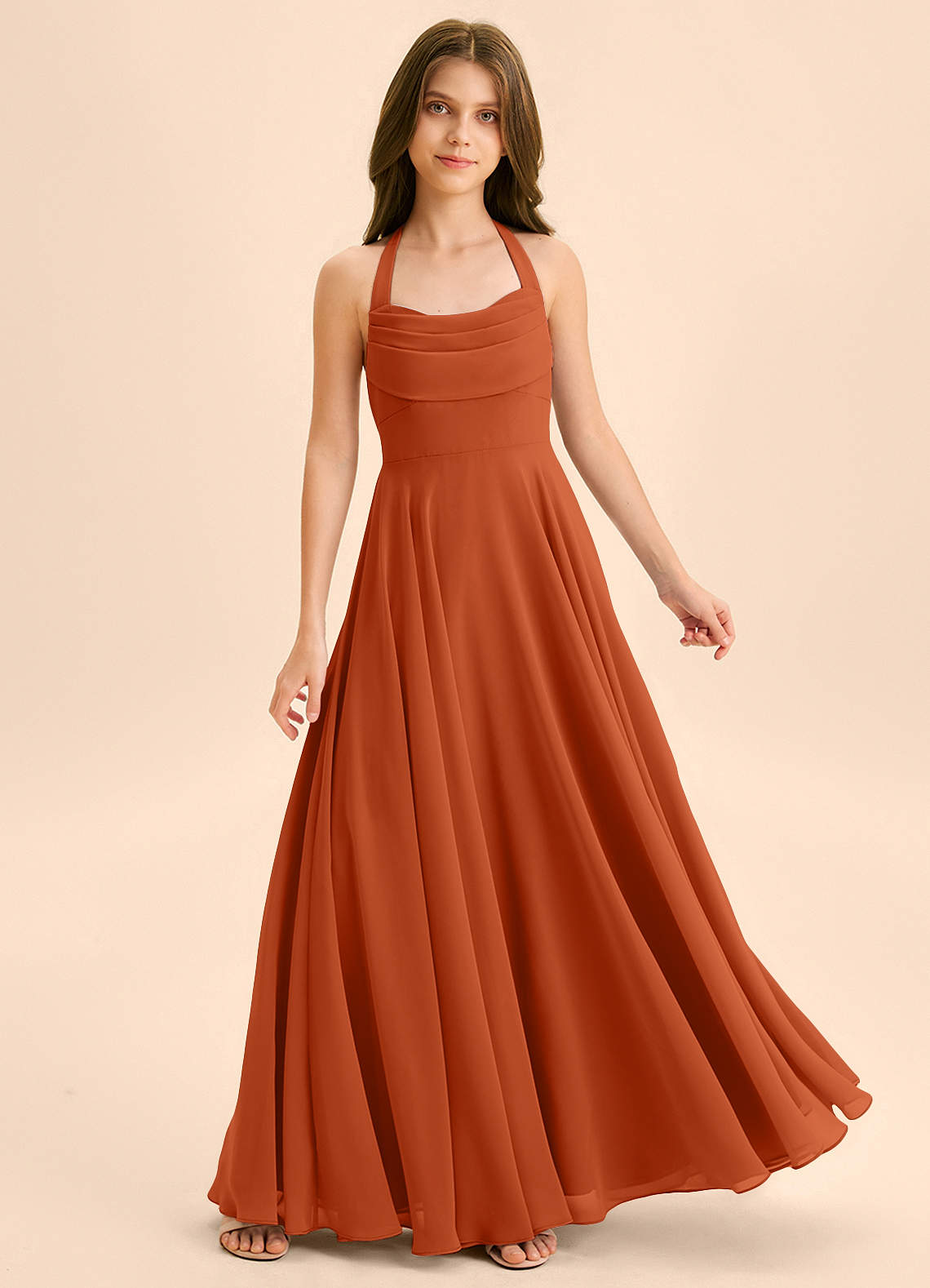 Burnt Orange A-Line Sweetheart Neckline Chiffon Dress