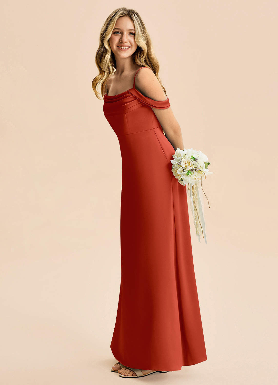 Rust A-Line Off the Shoulder Stretch Satin Dress