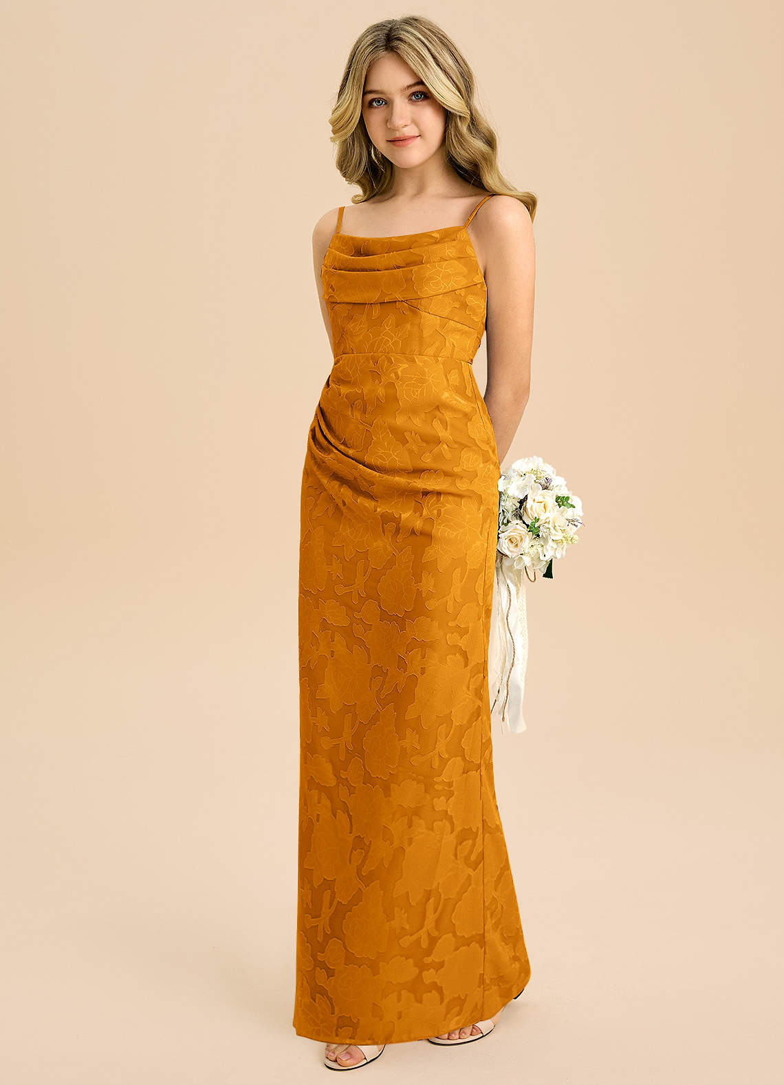 Butterscotch Sheath Pleated Floral Burnout Dress