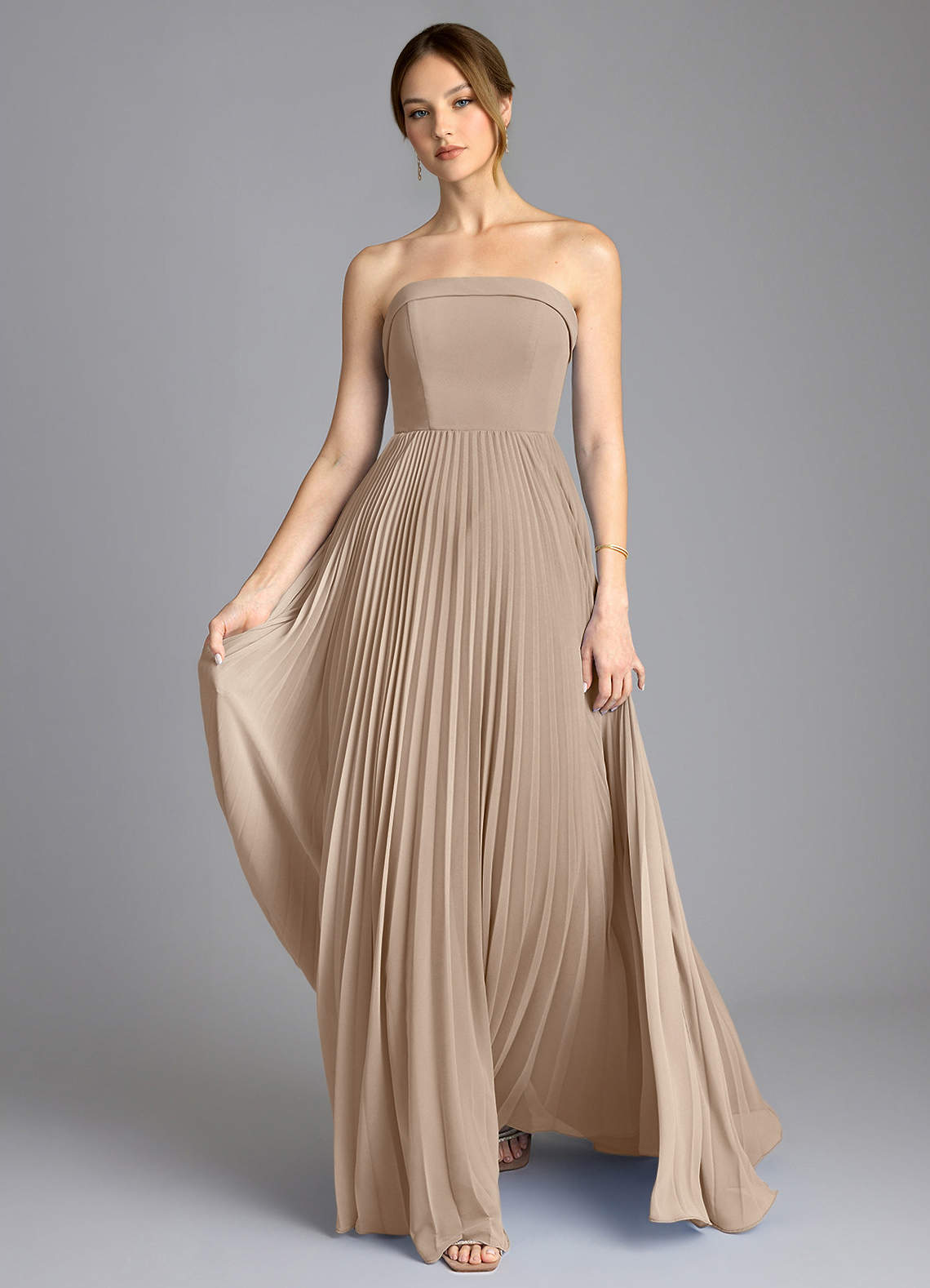 Taupe A-Line Strapless Chiffon Dress