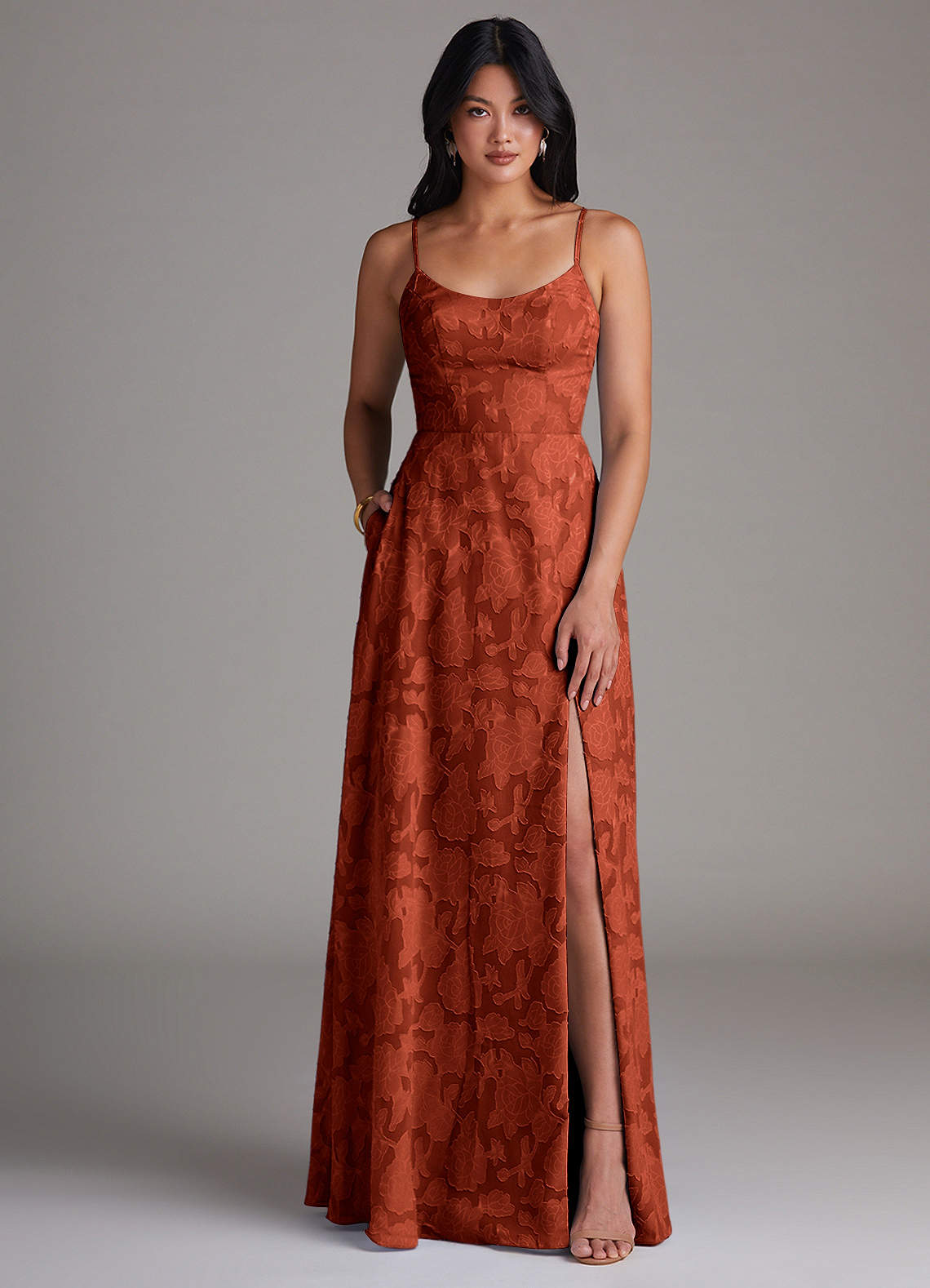 Auburn A-Line Side Slit Floral Burnout Dress