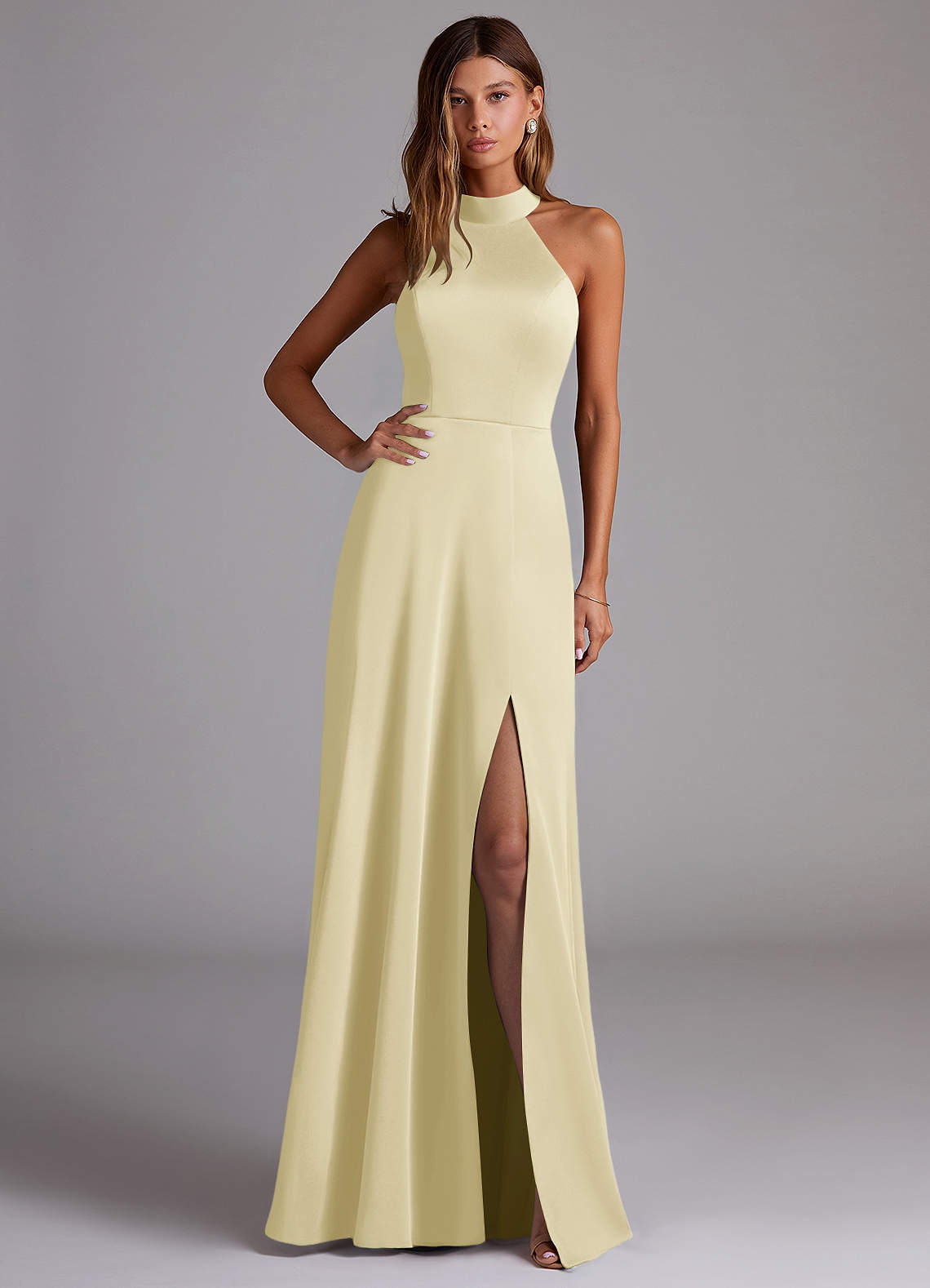 Lemon Sorbet A-Line High Neck Stretch Satin Dress