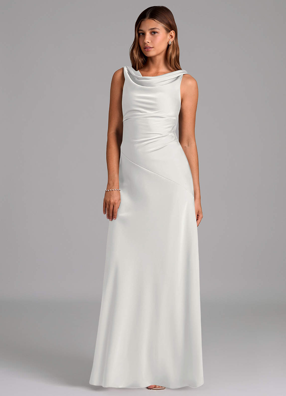 White A-Line Pleated Stretch Satin Dress