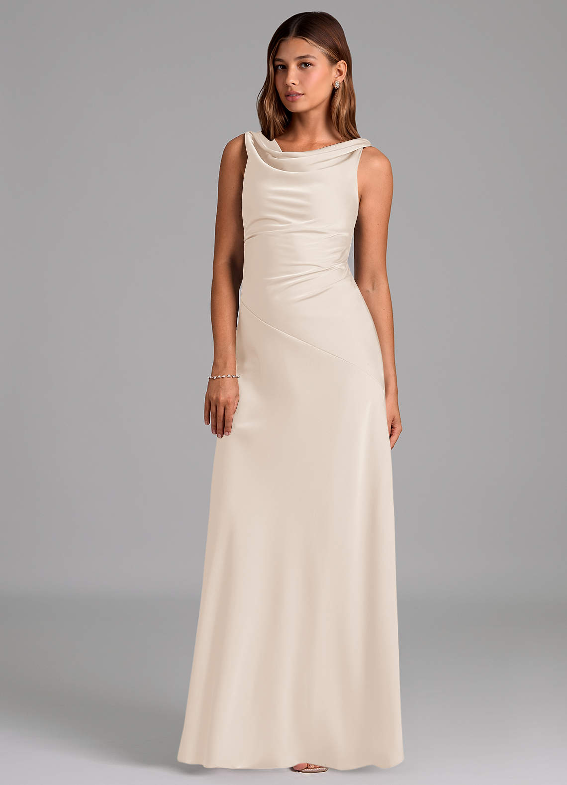 White Alabaster A-Line Pleated Stretch Satin Dress