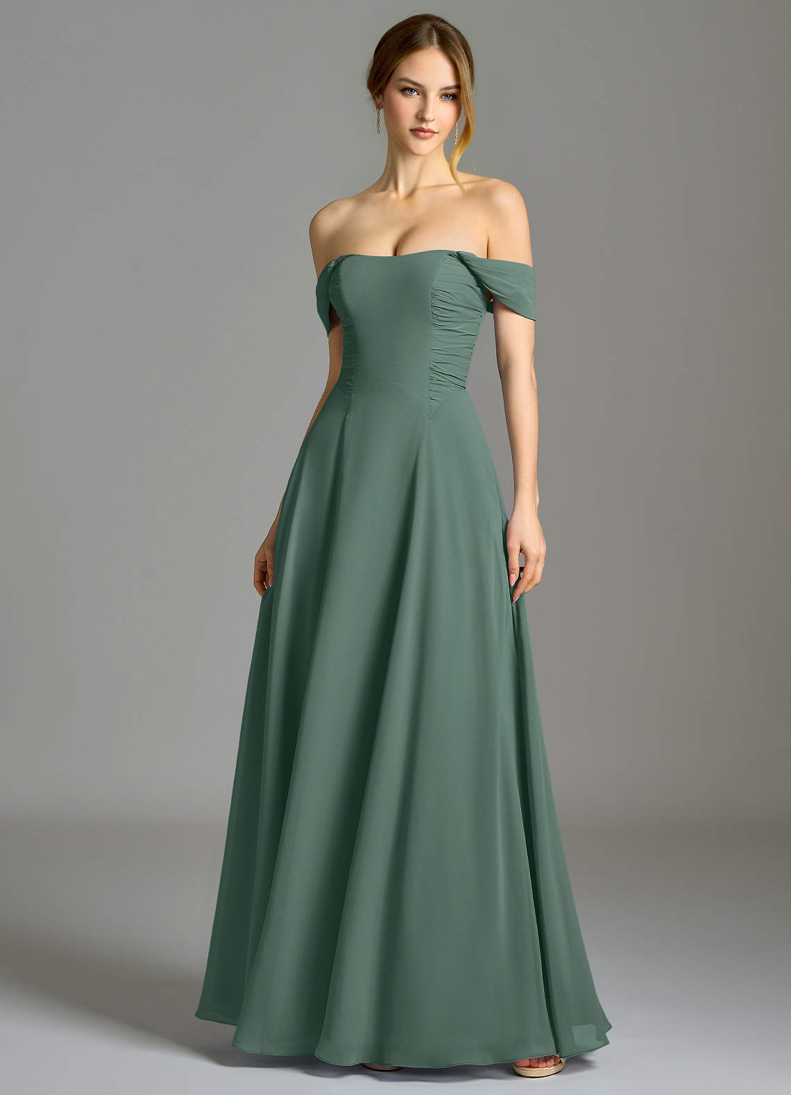 Sea Moss A-Line with Pockets Chiffon Dress