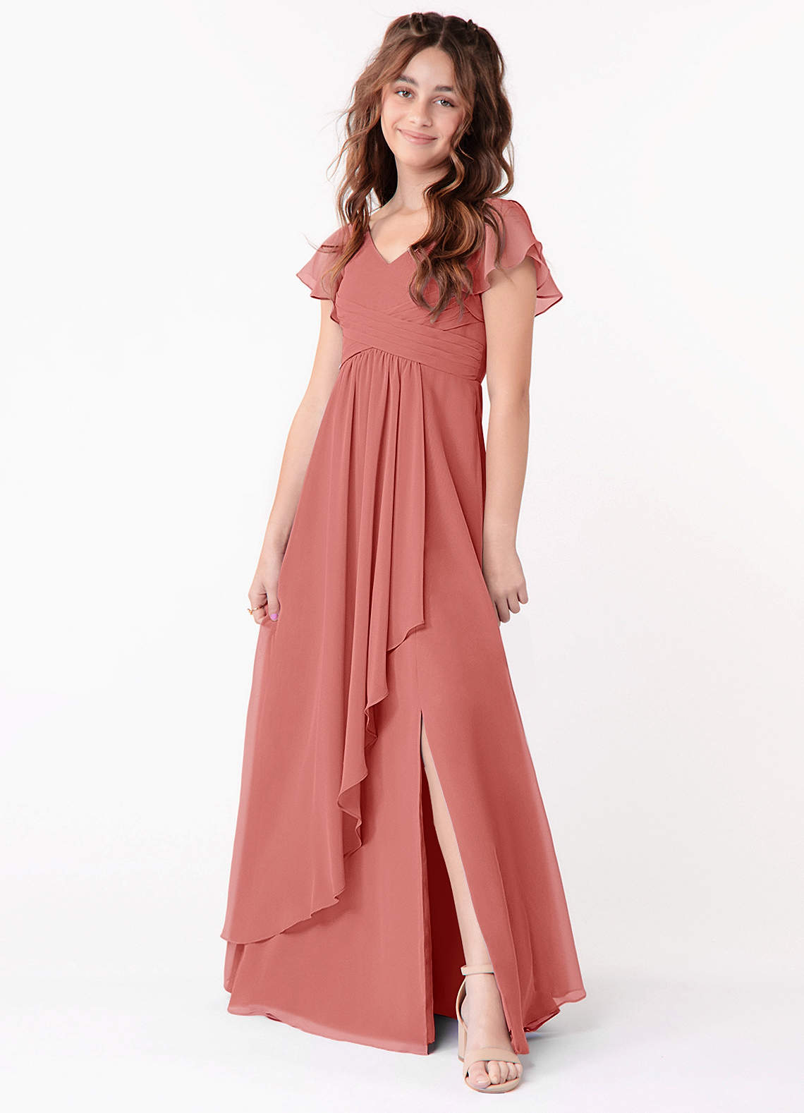 Antique Rose A-Line Ruched Chiffon Dress