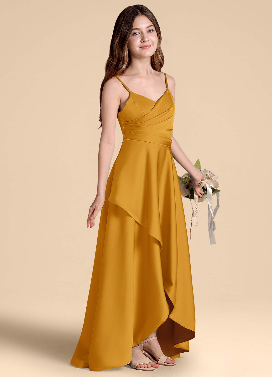 Butterscotch A-Line Pleated Stretch Satin Dress