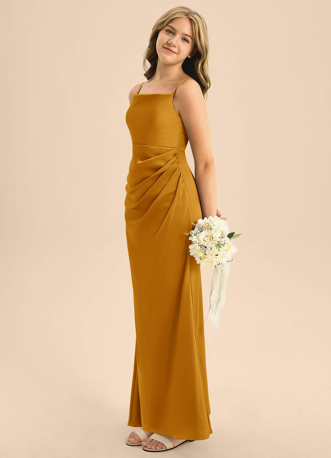Butterscotch A-Line Pleated Stretch Satin Dress