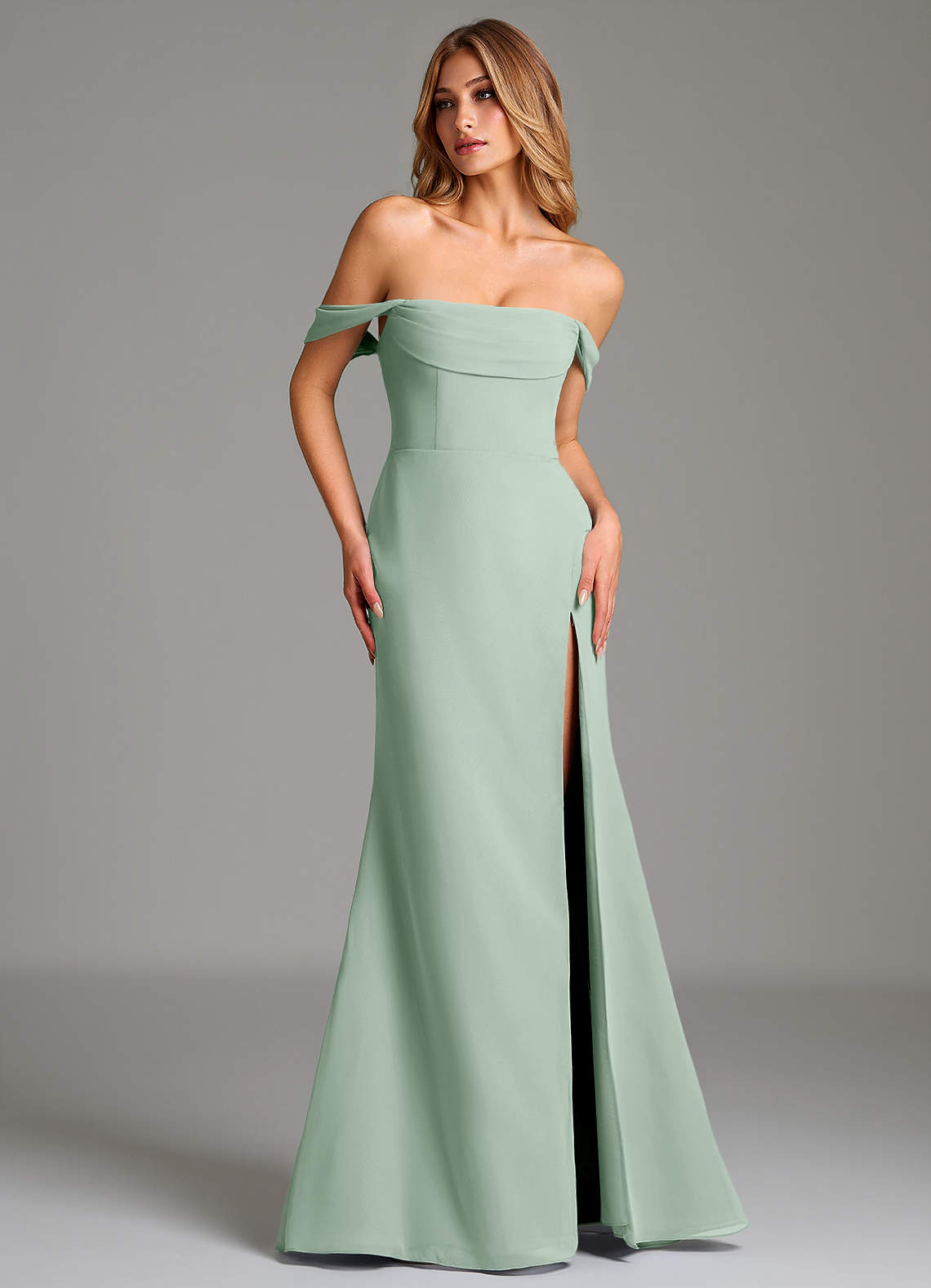 Agave Sheath Off the Shoulder Chiffon Convertible Dress