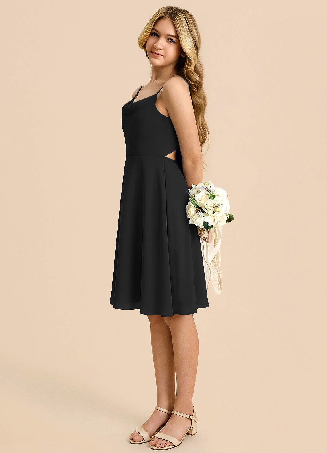 Black A-Line Bow Chiffon Dress