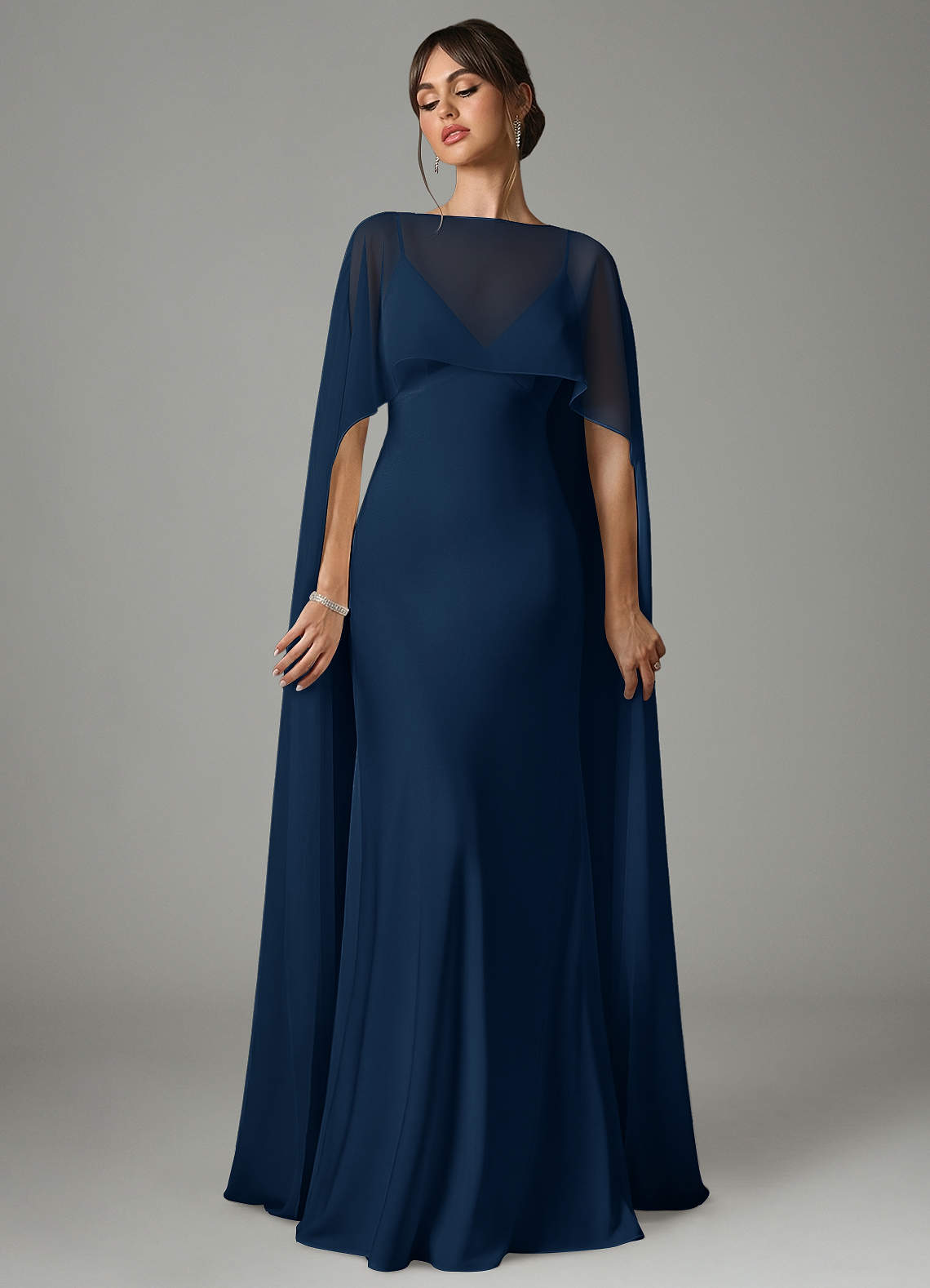 Dark Navy A-Line Stretch Satin Dress