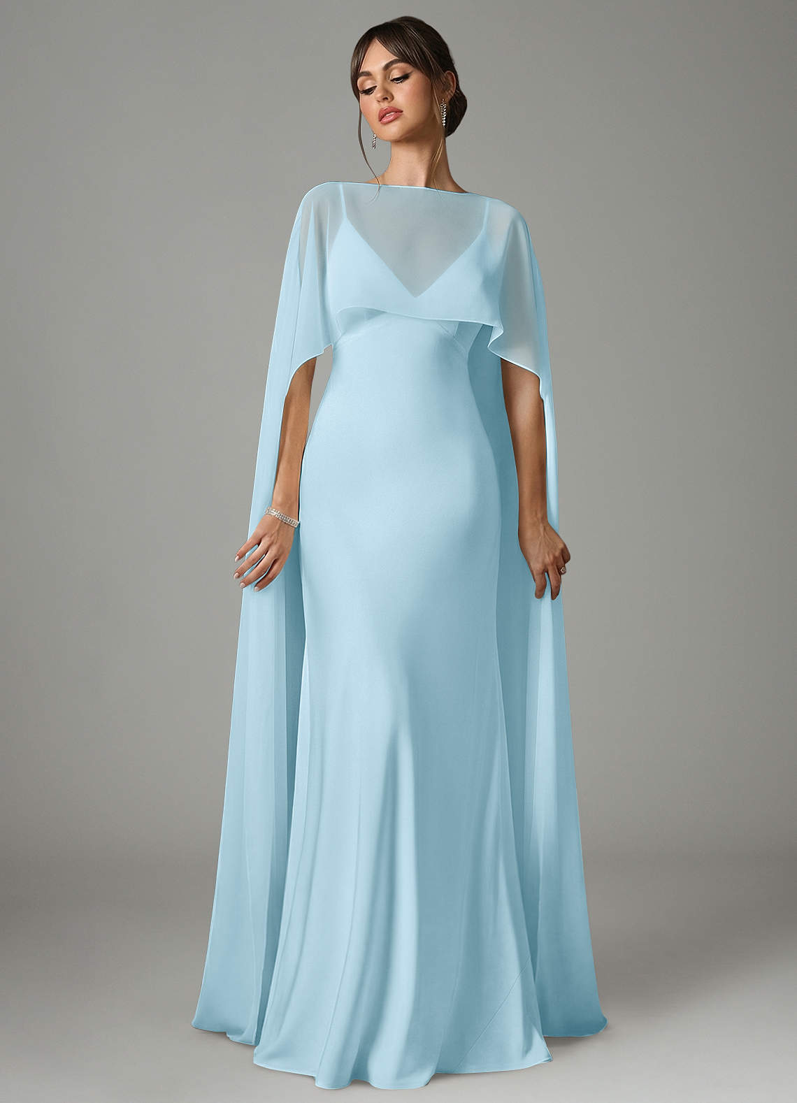 Sky Blue A-Line Stretch Satin Dress