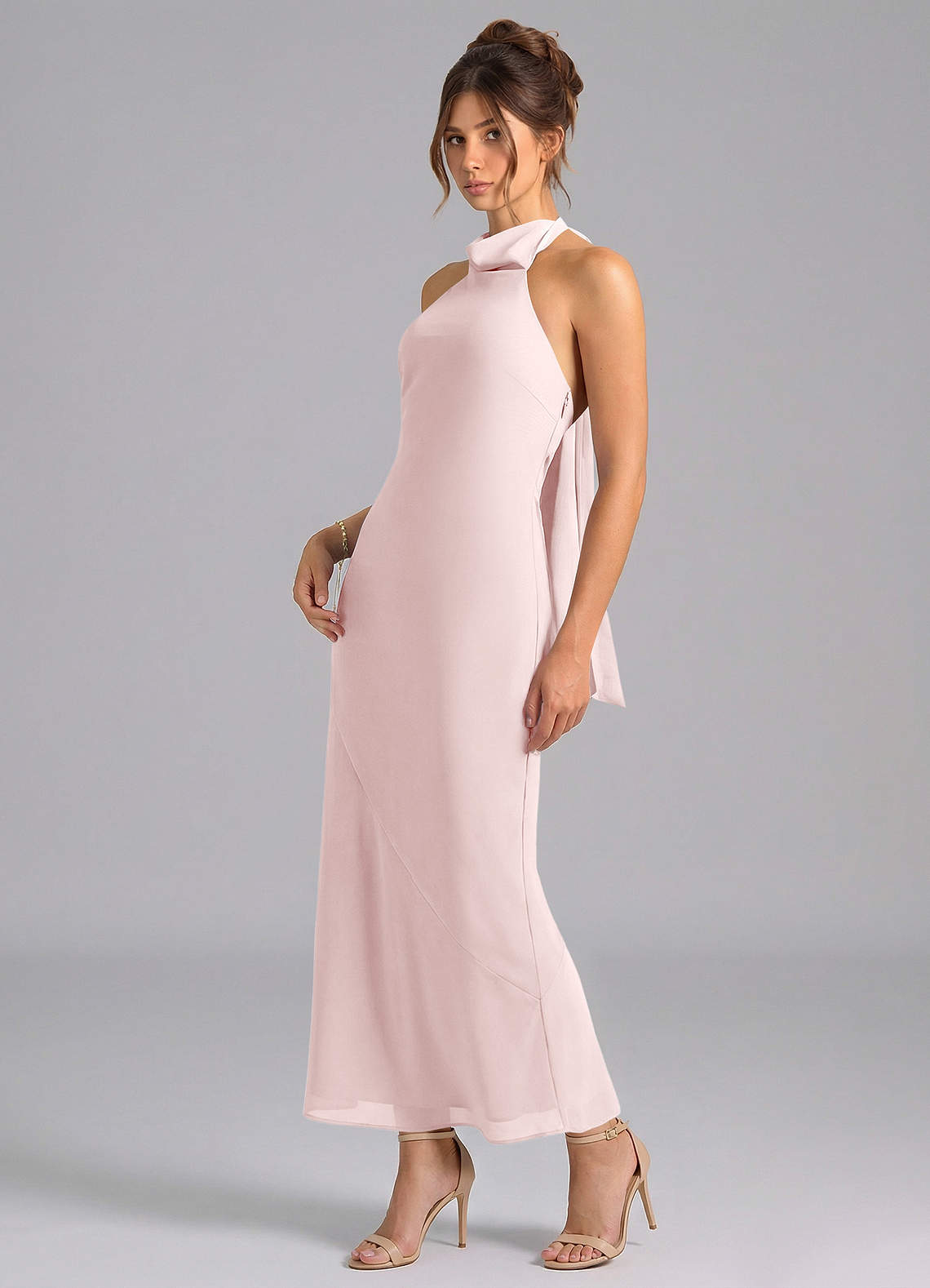 Blushing Pink Mermaid High Neck Chiffon Dress