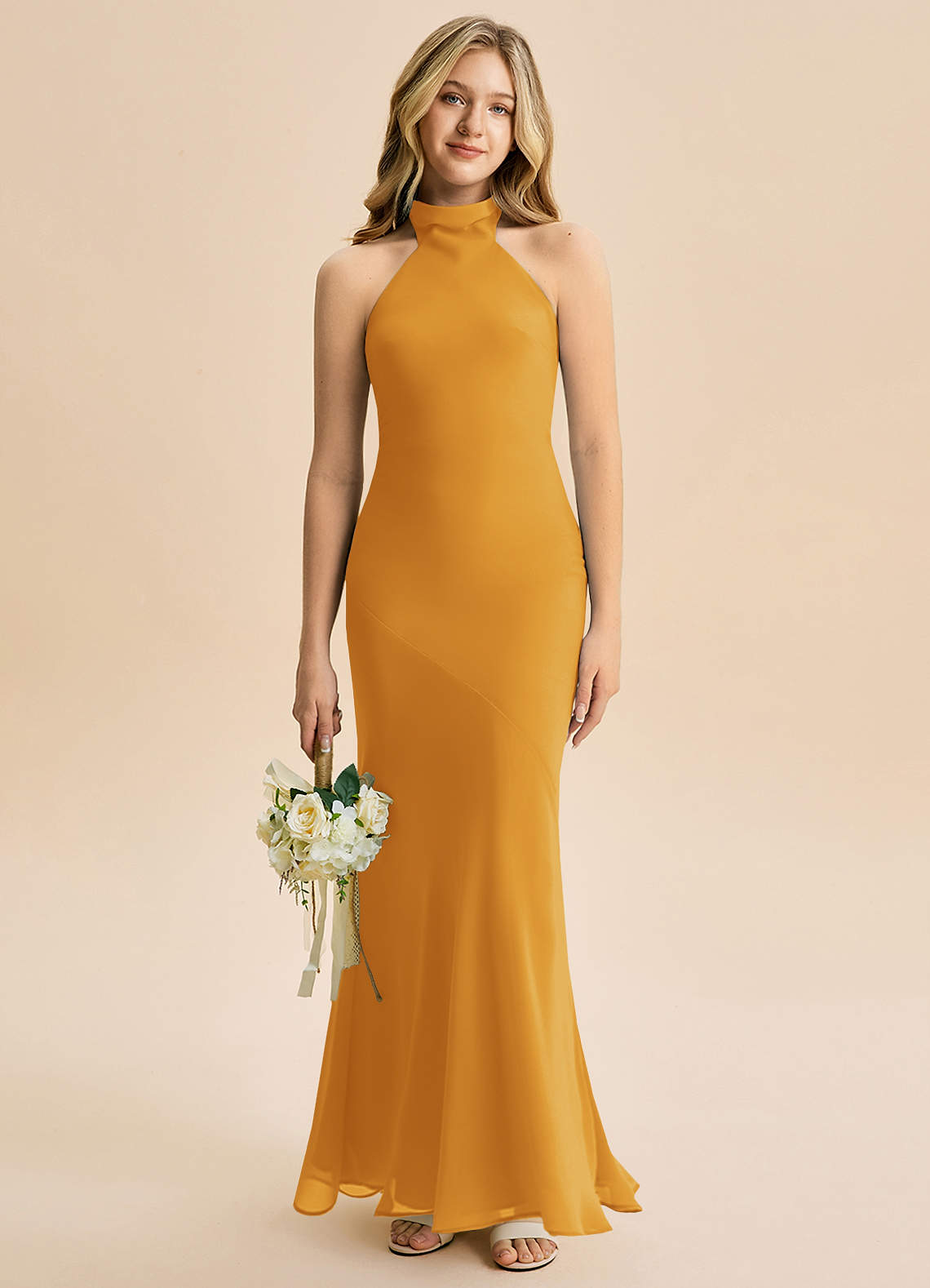 Butterscotch Mermaid High Neck Chiffon Dress