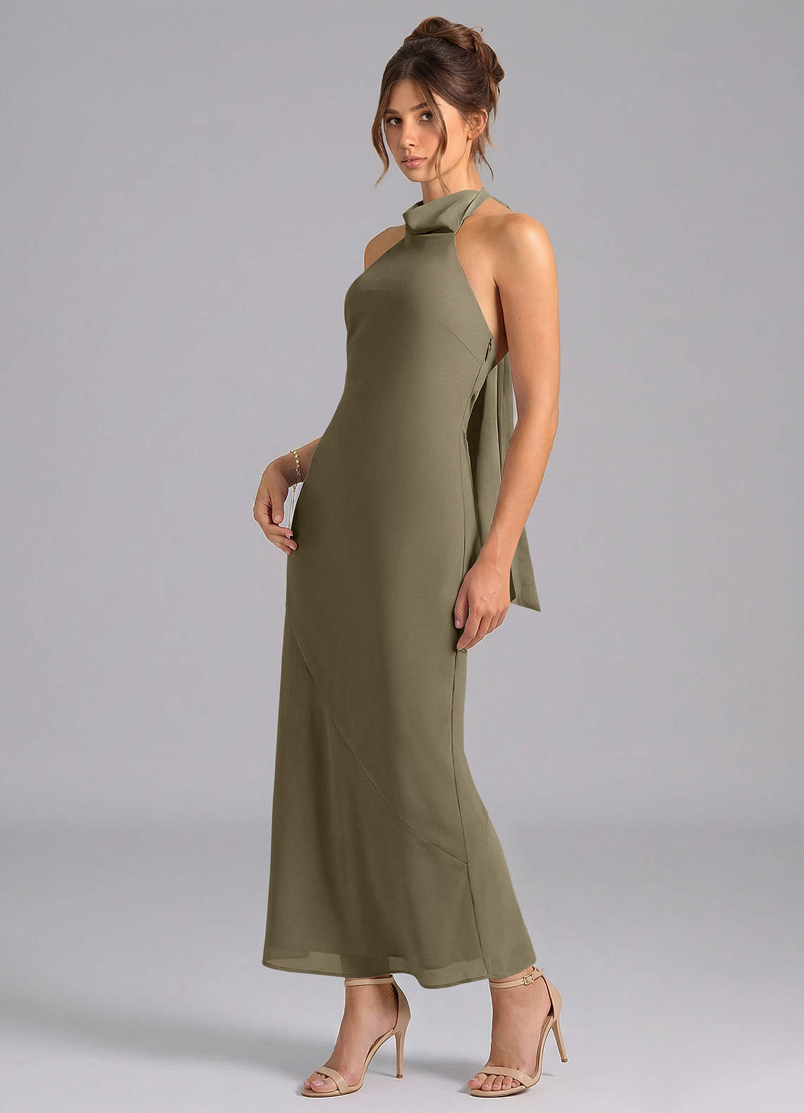 Willow Green Mermaid High Neck Chiffon Dress