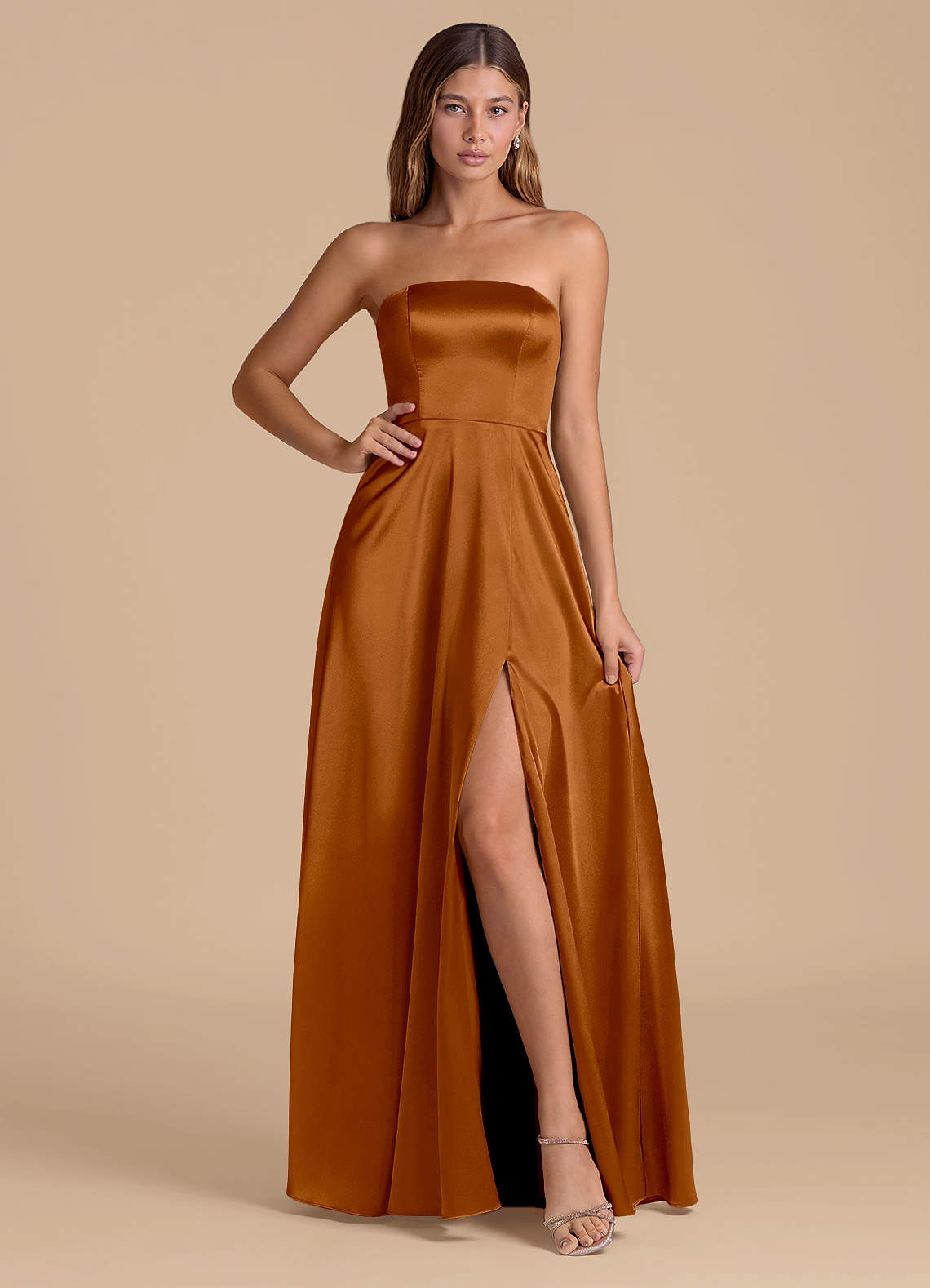 Copper A-Line Strapless Metallic Satin Dress
