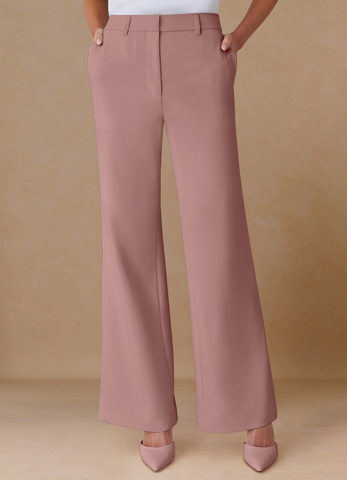 Marina Dusty Rose Refined Weave Straight-Leg Pants