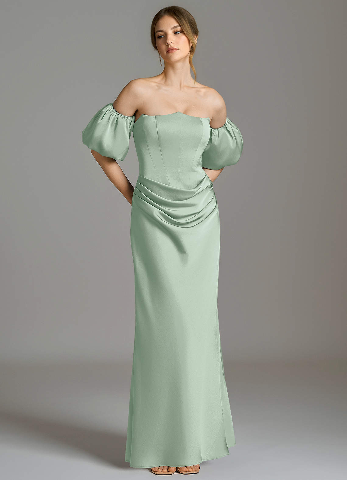 Agave Mermaid Off the Shoulder Stretch Satin Dress