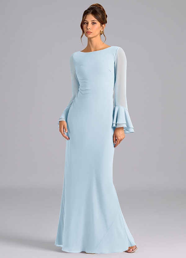 Vestido de Azul Cielo de Gasa de Corte Sirena con Corsé