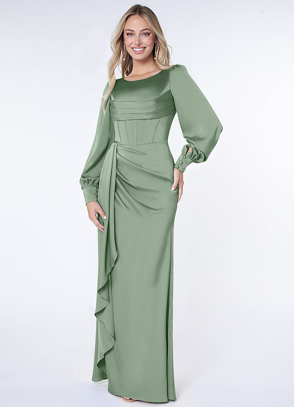Vestido de Matcha de Satén Elástico de Corte Sirena con Manga larga
