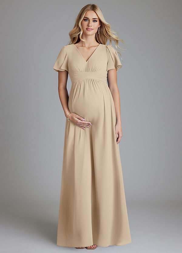 Vestido de Corte en A Cuello en V fruncido Hasta el suelo Gasa