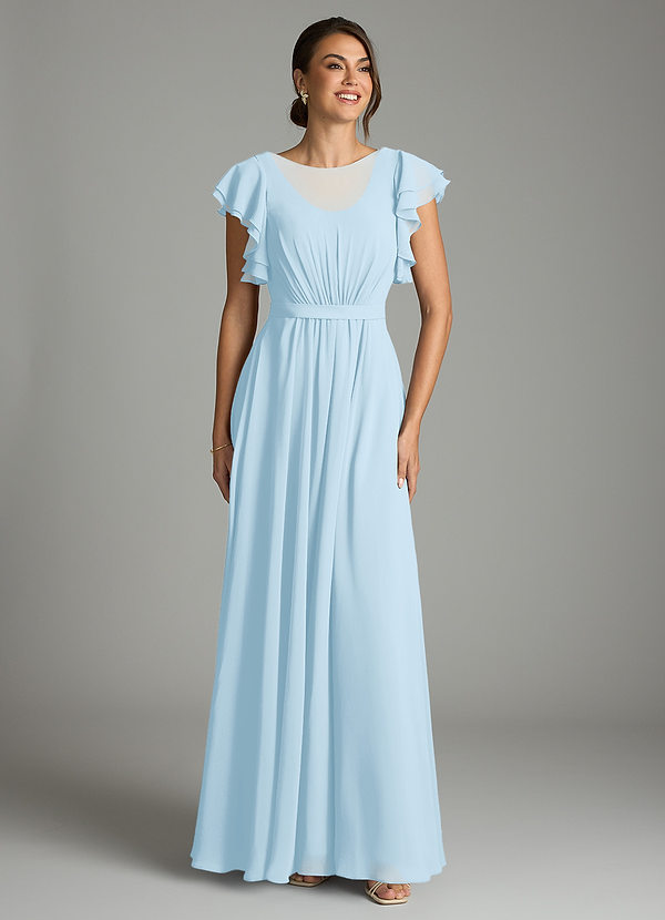 Vestido de Azul Cielo de Gasa de Corte en A con Cuello en V plisado
