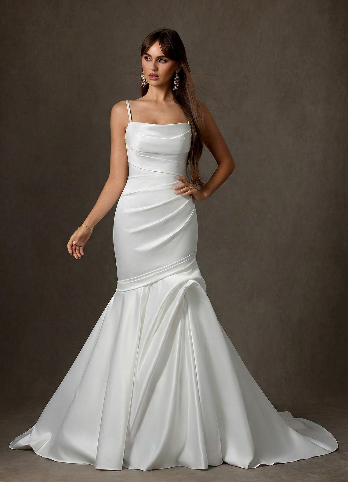 Vestido de Diamante Blanco de Satén de Corte Sirena con Sin tirantes