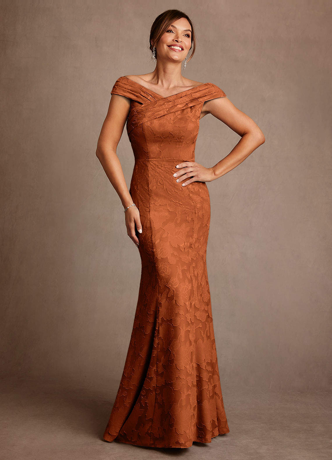 Vestido de Naranja Quemada de Devorado Floral de Corte Recto con Plisado
