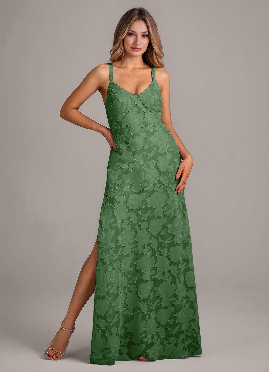 Vestido de Eucalipto de Devorado Floral de Corte en A