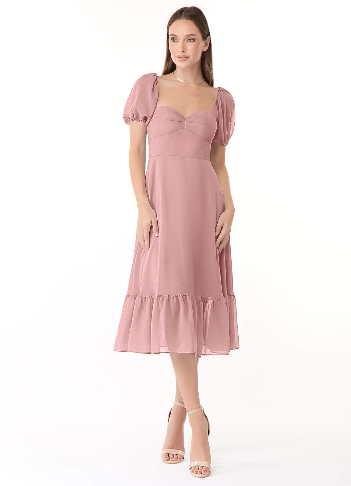 Vestido de Dusty Blue de Gasa de Corte en A con Corazón fruncido