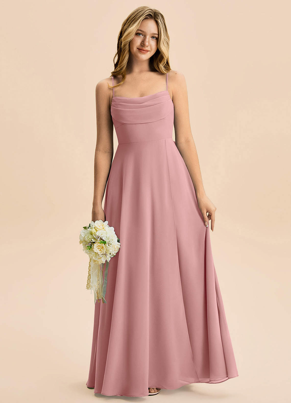 Vestido de Rosa Polvorienta de Gasa de Corte en A con Plisado