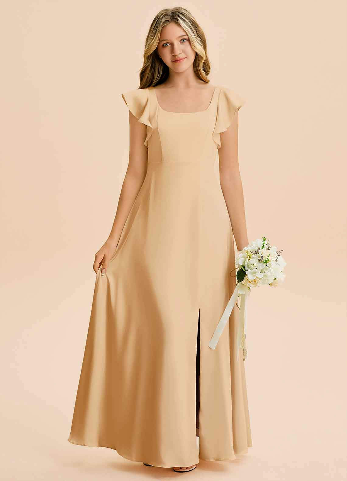 Vestido de Oro de Satén Elástico de Corte en A con Corte Lateral
