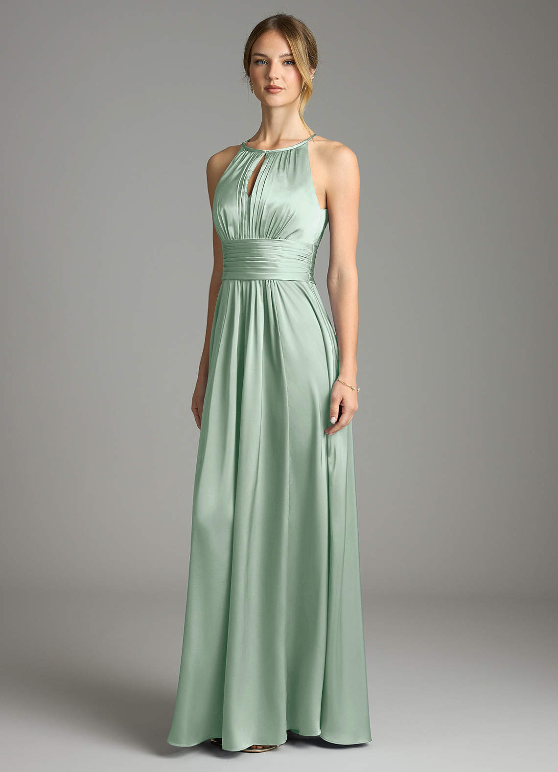 Vestido de Agave de Satén Elástico de Corte en A con Plisado