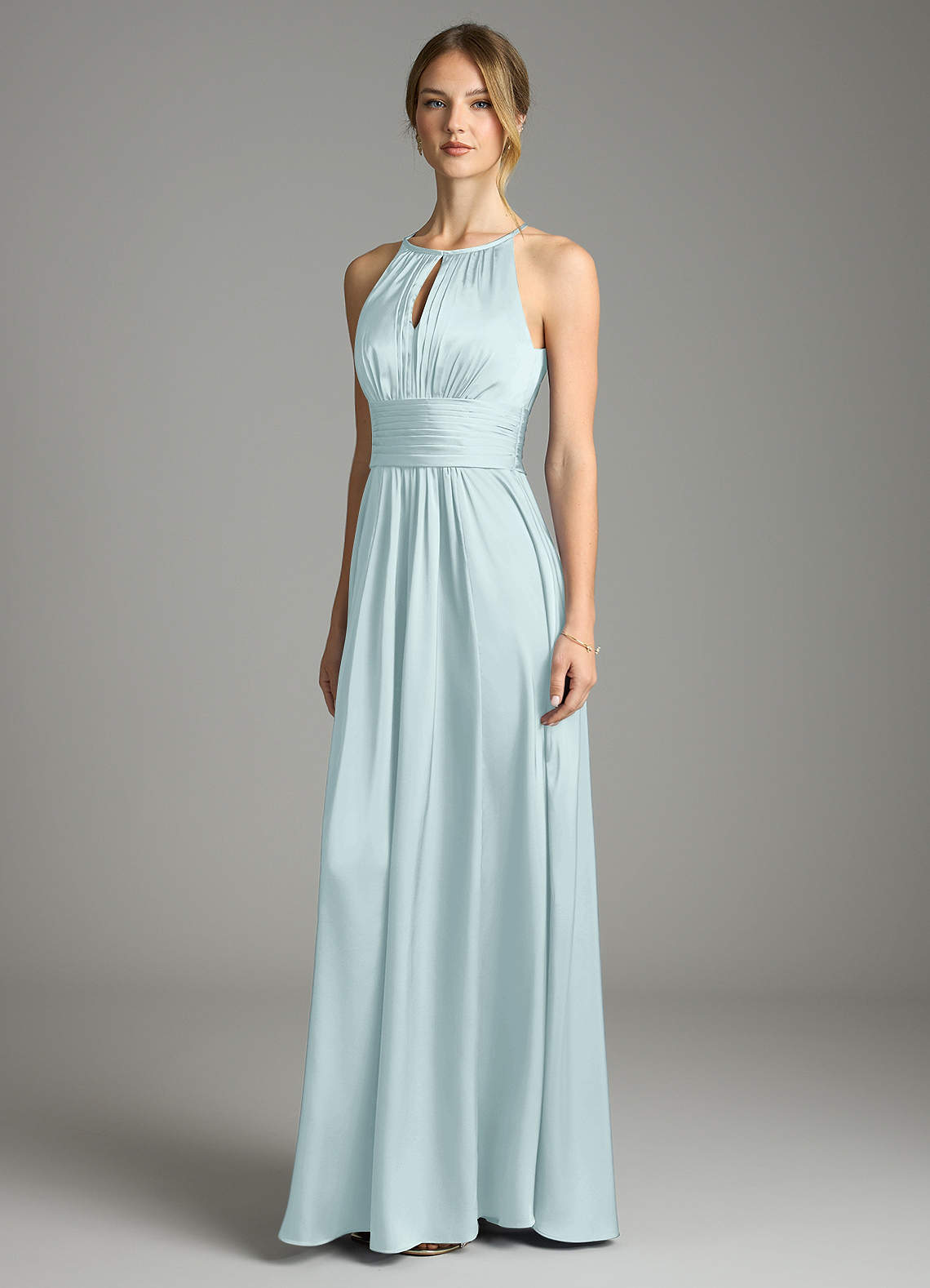 Vestido de Neblina de Satén Elástico de Corte en A con Plisado