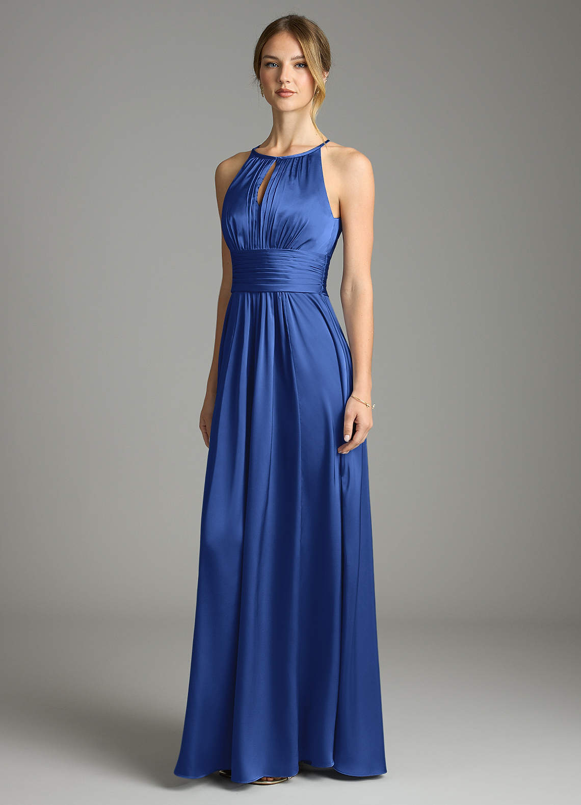 Vestido de Azul Real de Satén Elástico de Corte en A con Plisado