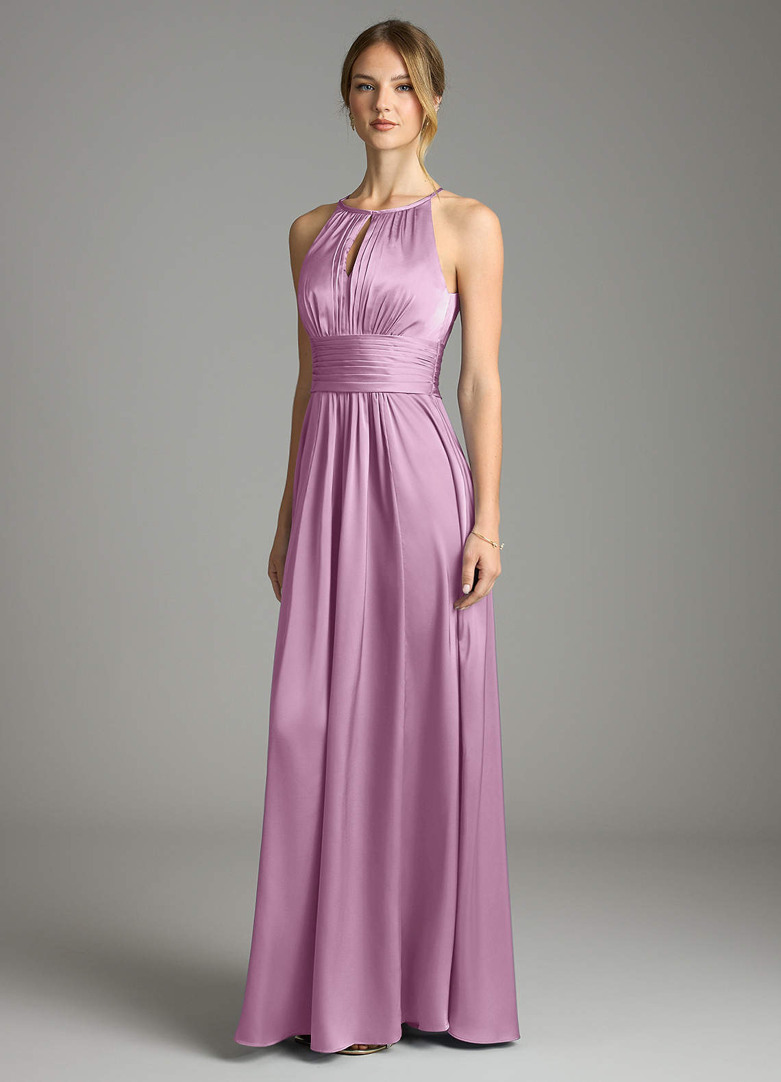 Vestido de Glicinia de Satén Elástico de Corte en A con Plisado