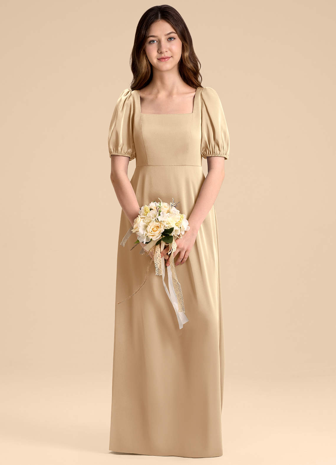 Vestido de Champán de Satén Elástico de Corte en A con Lazo